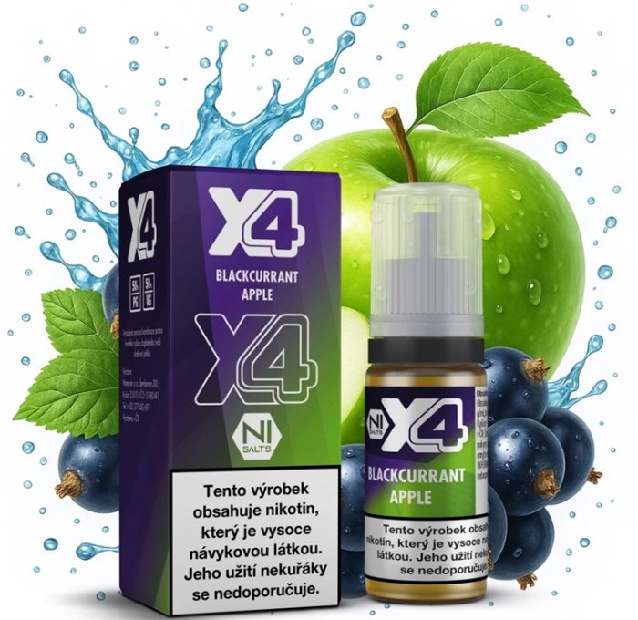 - Liquid X4 Bar Juice - Černý rybíz a jablko (Blackcurrant Apple) 10ml - 10mg