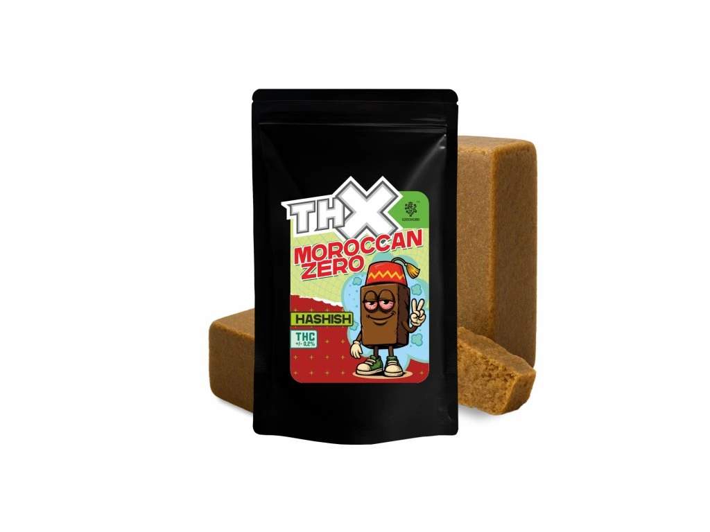 Proto v rámci legislativních pravidel přicházíme na trh s naším THX hašišem marockého stylu Zero, který uspokojí všechny středně náročné fanoušky těchto konopných produktů. Tento hašiš je pevnější konzistence, i když stále v desce ohebný. V teplejších podmínkách získává svou typickou marockou plasticitu.